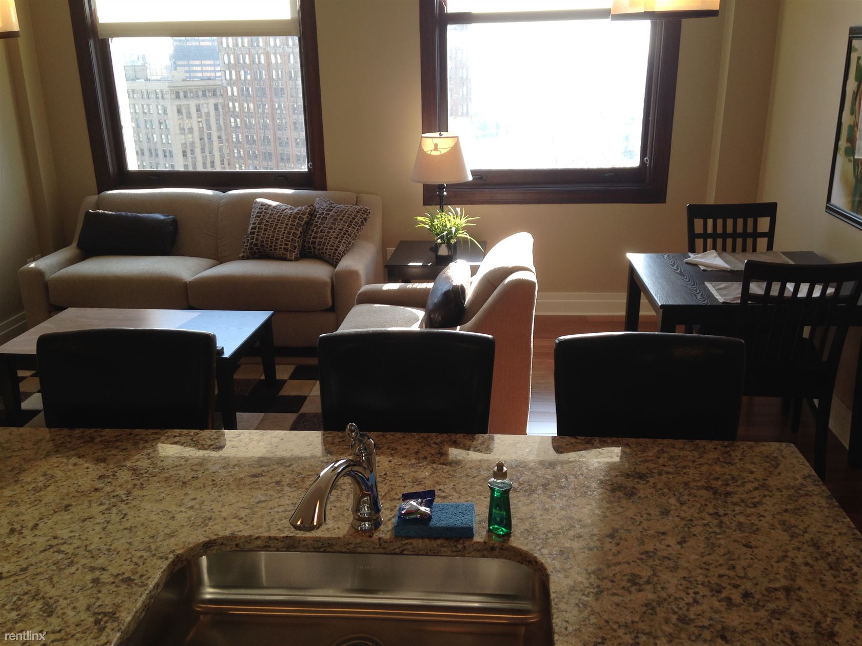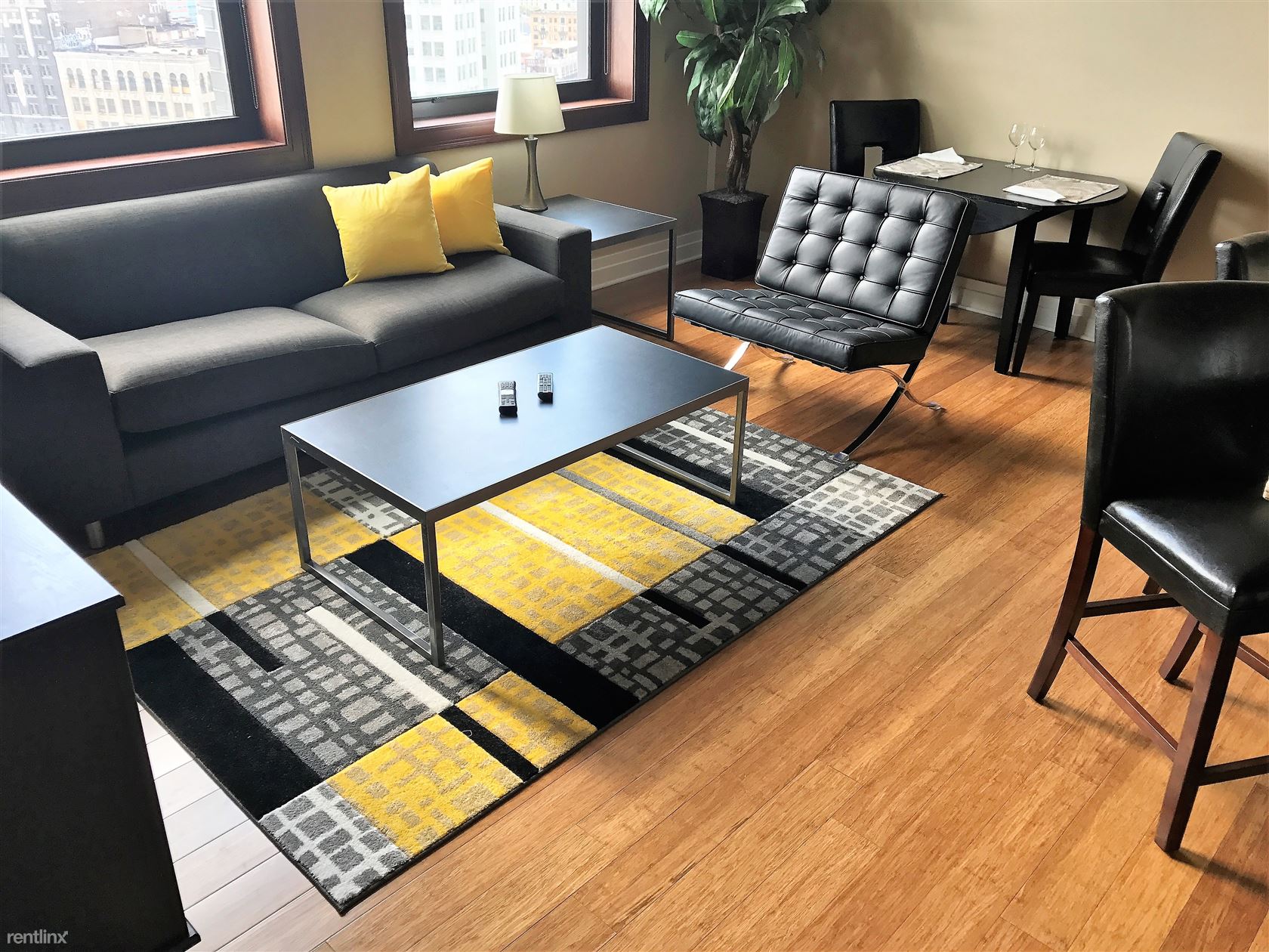 Our suite is on the 14th floor with a Grand Circus Park, Comerica Park, and Woodward view. Like all of our suites, it is fully furnished and includes every detail. Just bring your suitcase, You don't need to bring anything, Just show up and get ready for work, a night on the town or watch you favorite show on the HDTV. There will even be a can opener and corkscrew waiting for you to put to good use. Every detail... Oh, and the utilities, cable TV, Comcast WiFi, and parking are all included.