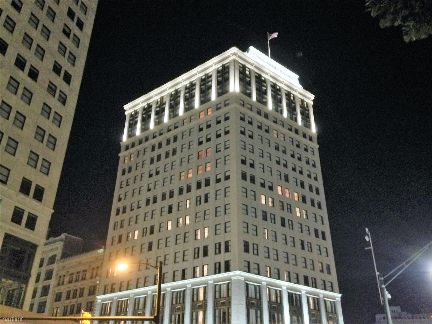 The picture of the two large buildings are Broderick Tower, the taller of the two (we have suites there too) and The David Whitney Building, both on Grand Circus Park and in Detroit's primary retail/entertainment/stadium corridor - Woodward Avenue.