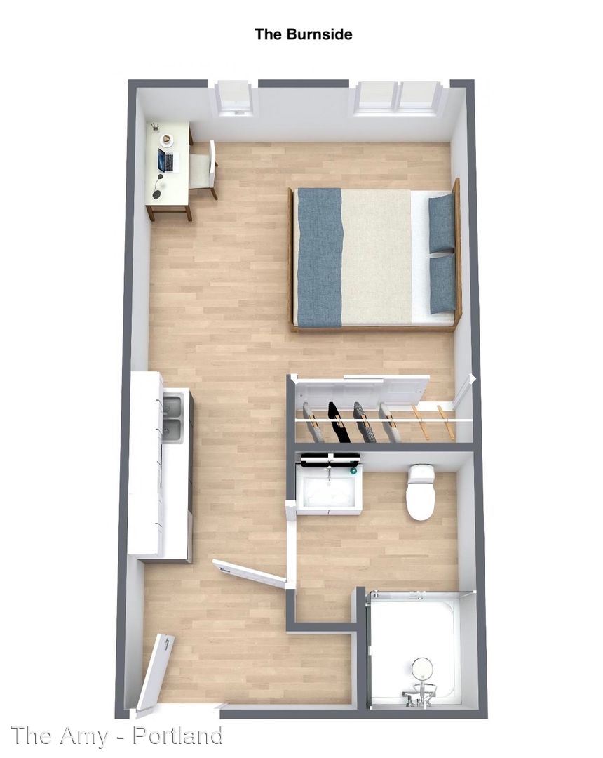 The Amy was designed with the student experience in mind. Several large common areas throughout the building promote community and student connection, while the private studio apartments allow residents to maintain their own space. Our apartments come complete with a Murphy bed and a desk and chair set, perfect for studying. An outdoor courtyard and complimentary bike parking are just a few of the amenities available to residents. Located within steps of Portland State University, The Amy is also a short walking distance from Safeway, restaurants, coffee shops, and many public transit lines.