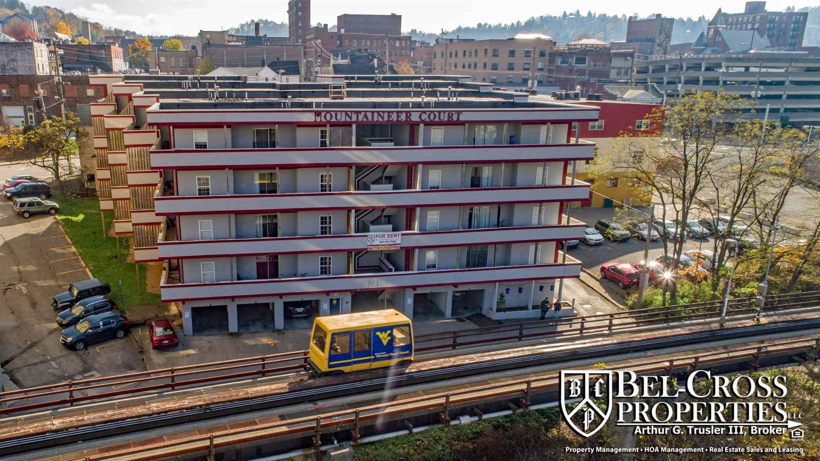 3 bed/1.5 bath apartment Downtown; includes Water/Sewer - Available NOW - This 3 bed/1.5 bath apartment is located on the second floor of Mountaineer Court. It is walking distance to the WVU downtown campus and has access to the rail trails behind the building. This apartment features a washer and dryer in unit, dishwasher, central air, a private balcony/deck with access through the bedrooms and living room. This apartment has gas heat. Tenants are responsible for gas, electric, and garbage. Water/sewer is included. One pet is considered with a $500 refundable pet deposit and pet screening. Parking is available for rent on a separate lease for $60 per month.